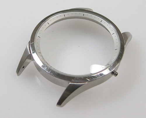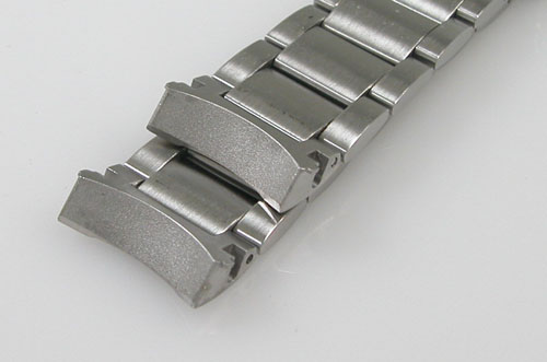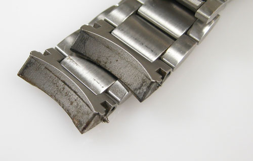 ステンレス無垢バンドに三つ折れバックル。バフ掛けもご依頼ですがフエルトバフは掛けられないタイプ。