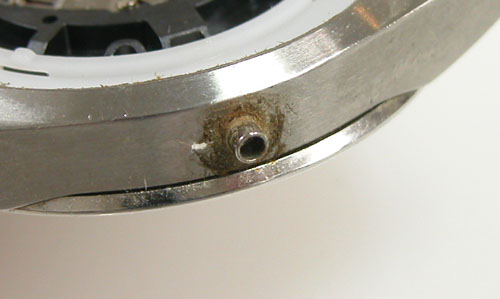 裏蓋の裏側もチェックしますがパッキンが効いていた事がよくわかります。