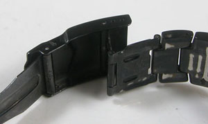 ステンレス無垢バンドに三つ折れダブルロック。