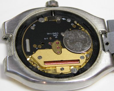 綺麗になったケースにムーブメントを戻して電池格納部をチェックします。
