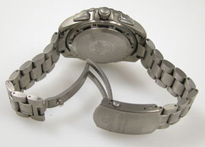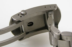 チタン無垢バンドに三つ折れプッシュバックル。