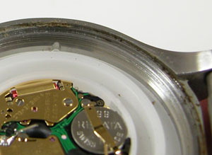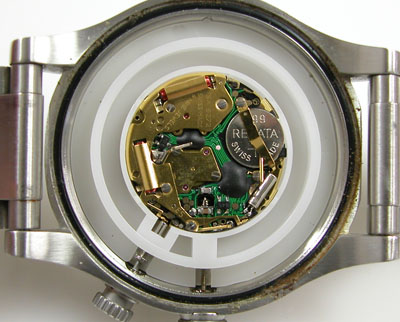 綺麗になったケースにムーブメントを戻して電池格納部をチェックします。