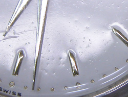 ホーロー仕上げを意識してこうなたのか?こういうものなのか定かではありませんが角度によって小さな凹みが見えます。これでもIWCとなれば文字盤リダンのみで10.000円は掛かります。それプラスOH代金となります。