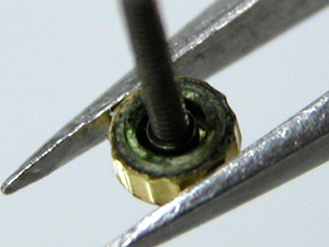 裏蓋の裏側もチェック。先ずは、竜頭を抜いて。