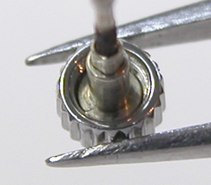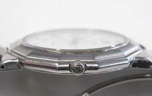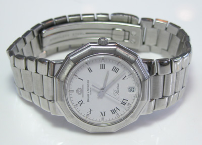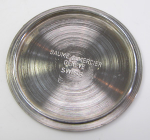 薄型クォーツなのにねじ込み竜頭も珍しい。Baume Mercier としては標準の装備みたいですが。