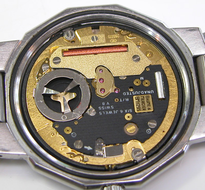 綺麗になったケースにムーブメントを戻して電池格納部をチェックします。