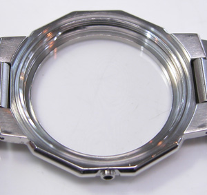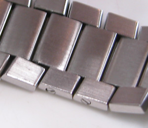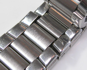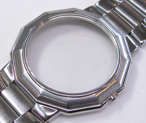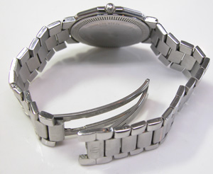 薄型クォーツですがステンレス無垢バンドに三つ折れバックル。