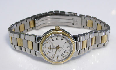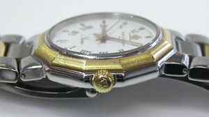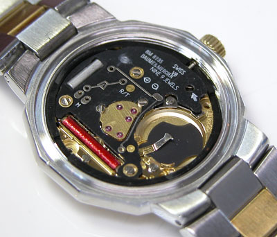 薄型クォーツですが裏蓋はスクリューバックで右が裏蓋記載。
