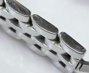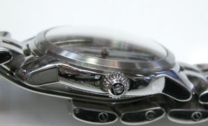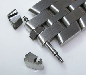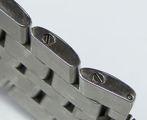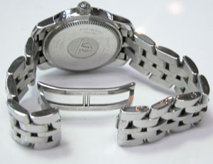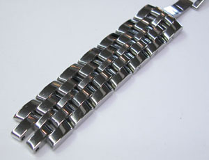 ステンレス無垢バンドに両開きバックル。