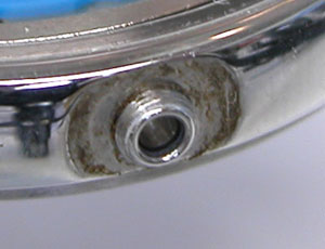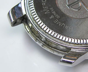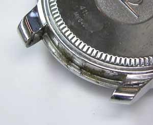 ラグ部の汚れもチェックして裏蓋はスクリューバックで右が裏蓋記載。