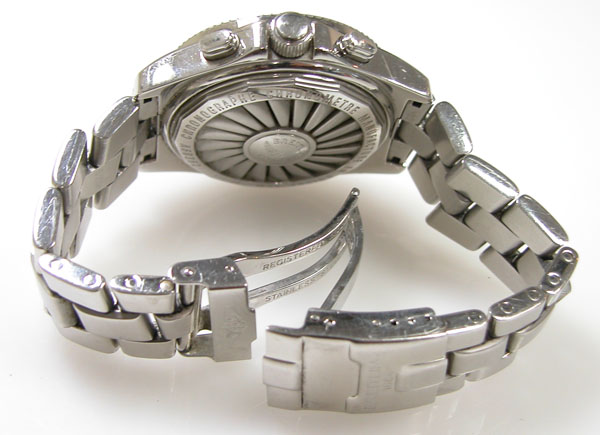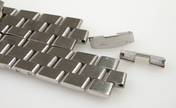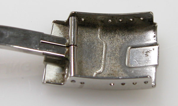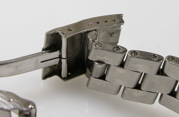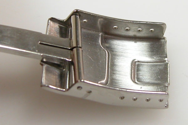 ステンレス無垢バンドに三つ折れダブルロック。