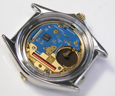 綺麗になったケースにムーブメントを戻して電池格納部をチェックします。