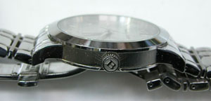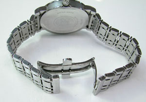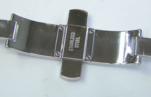 ステンレス無垢バンドに両開きバックル。