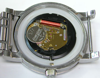 綺麗になったケースにムーブメントを戻して電池格納部をチェックします。