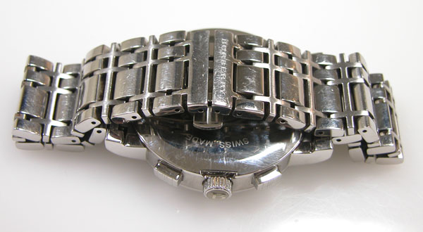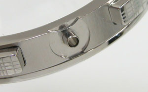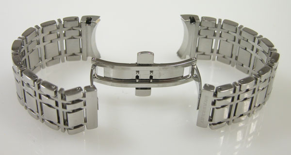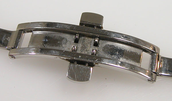 ステンレス無垢バンドに両開きバックル。