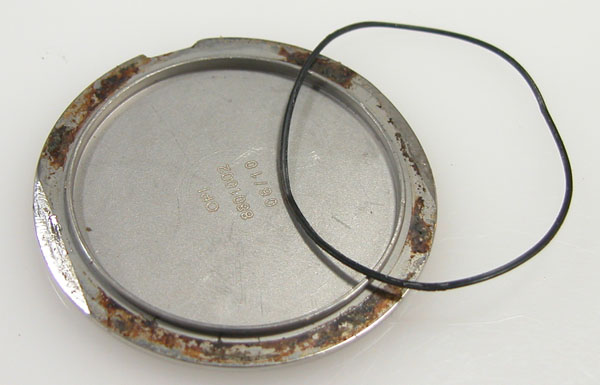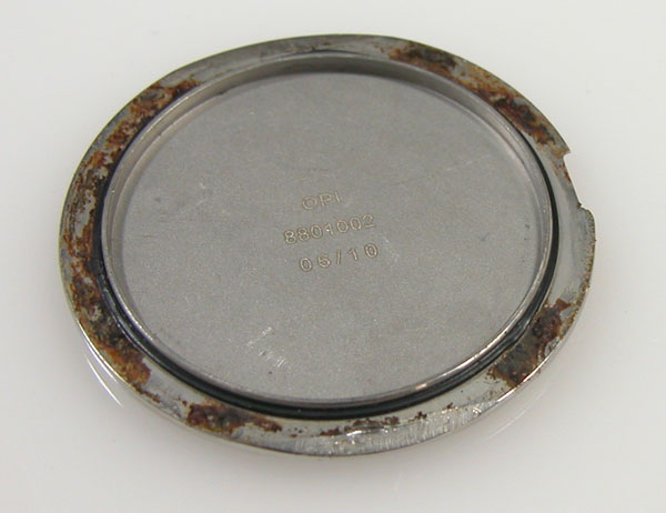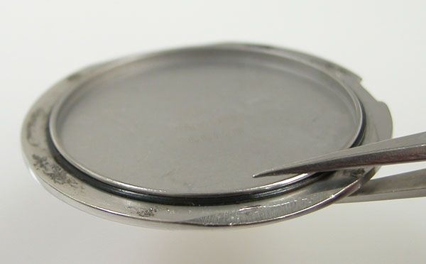 サビは削り落として洗浄して綺麗になったところで。パッキンにシリコン塗布をして裏蓋に戻します。