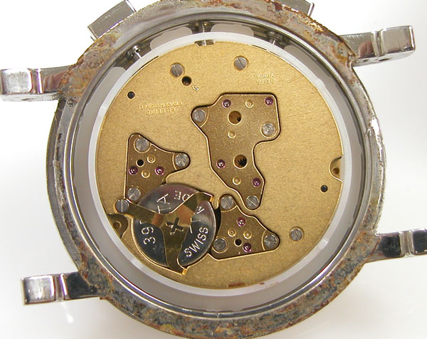 綺麗になったケースにムーブメントを戻して電池格納部をチェックします。