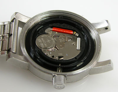 綺麗になったケースにムーブメントを戻して電池格納部をチェックします。