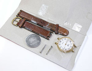 薄い梱包で届きましたが”時計が入っているのか?”と開封したらキットになって出て来ました(;^_^A。ただテープで革ベルトを留めてあったので剥がしたら表面が・・(ブログでも紹介しましたが)