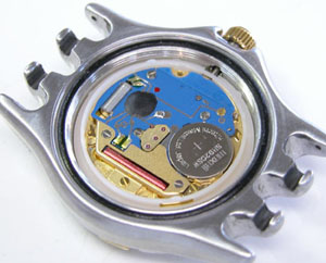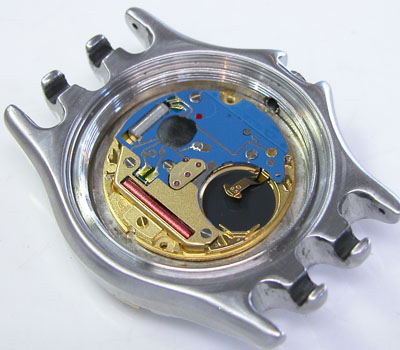 綺麗になったケースにムーブメントを戻して電池格納部をチェックします。