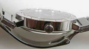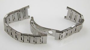 ステンレス無垢バンドに三つ折れプッシュバックル。