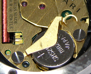 これが電池”SR521SW”。電池格納部をチェックします。
