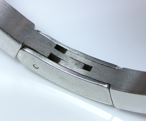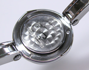ごらんのバングルウォッチですが電池交換の為にベルトを開きたいところですが。むむ・・どうやって開ける?