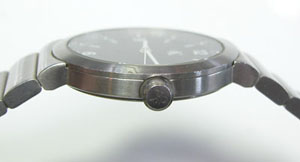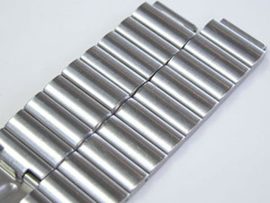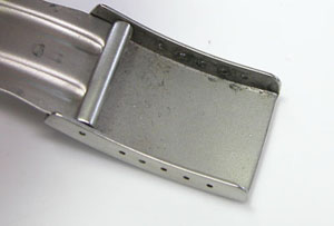 ステンレス無垢バンドに三つ折れバックル。