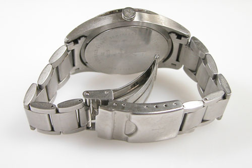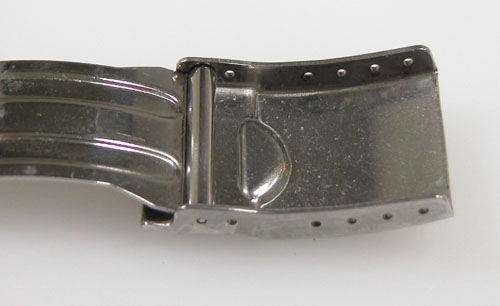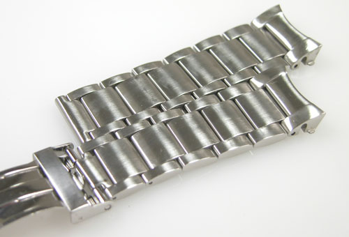 ステンレス無垢バンドに三つ折れバックル。バフ掛けもご依頼ですがフエルトバフは掛けられないタイプ。