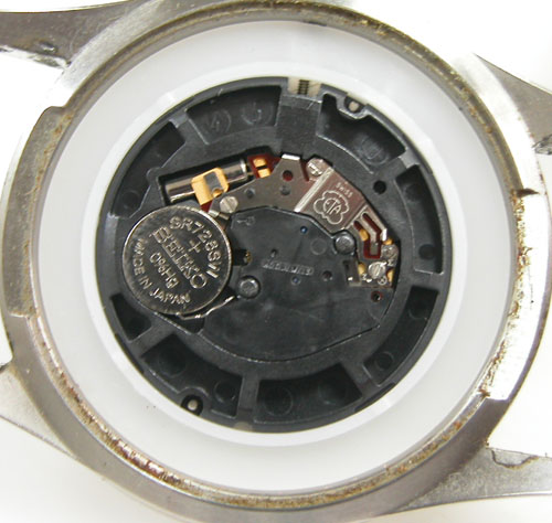 綺麗になったケースにムーブメントを戻して電池格納部をチェックします。