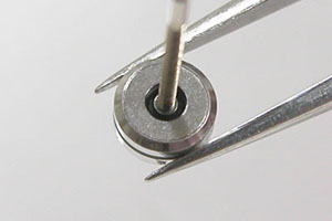 綺麗になったケースにムーブメントを戻して電池格納部をチェックします。