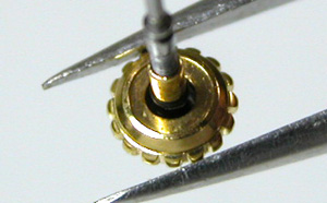 竜頭パイプもピッカピカ!これでムーブメントを戻して電池交換の準備完了。