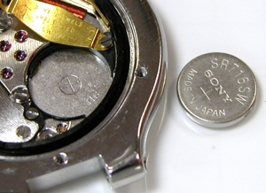 綺麗なムーブメントです。電池を取り出して電池格納部のチェック。問題はありません。