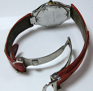 先ずは電池交換の為に革ベルトを外します。重厚なネジで留めてありました。