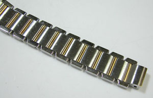 ステンレス無垢バンドに両開きバックル。ラグ部の状態もチェックします。