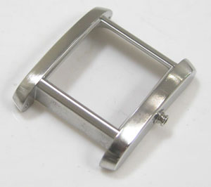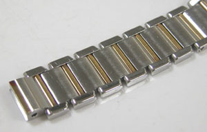 ステンレス無垢バンドに両開きバックル。