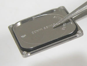 綺麗になったケースにムーブメントを戻して電池格納部をチェックします。