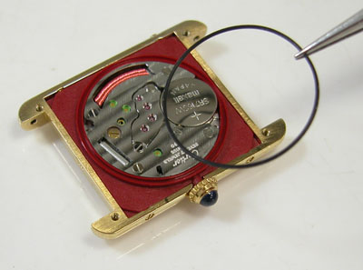 綺麗になったケースにムーブメントを戻して電池格納部をチェックします。