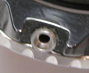 裏蓋の一部がラグ部のバネ棒が入る穴になっています。