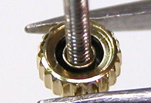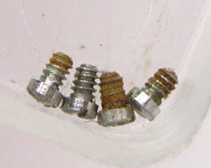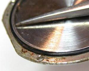 裏蓋ネジも洗います。裏蓋にサビが見えますね・・・。