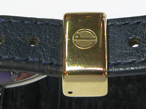 両開きバックルですがDバックルになっています。マーク入りバックル。