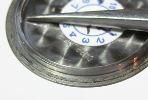 綺麗になったケースにムーブメントをもどして電池格納部をチェックします。
