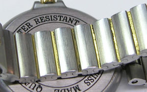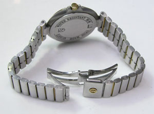 ステンレス無垢バンドに両開きバックル。