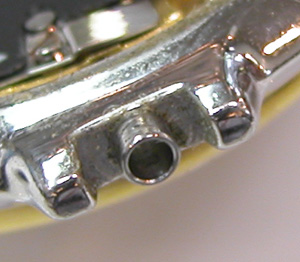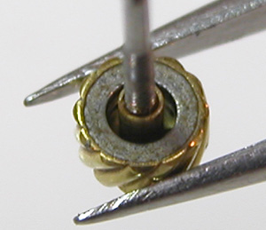プラスチックパッキン。ダンヒルは大概の場合で裏蓋はこの程度錆びています。これは洗浄で綺麗になりましたが。洗浄したら凸凹になっているものも多々あります。