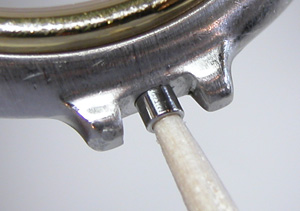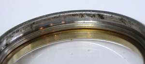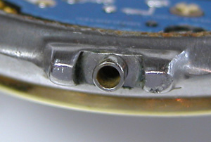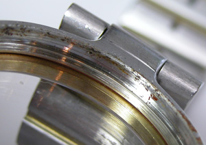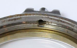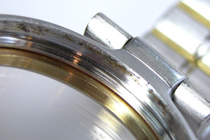 竜頭パイプの裏側もチェックします。全体的にケースの裏側にまでサビが及んでいます。