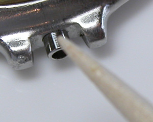 これは今、洗浄後で湿気ていますが乾いたら茶色の錆びた粉がムーブメントに落ちる可能性あり。爪楊枝を突っ込んでみれば。