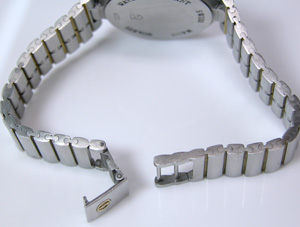 裏蓋は”はめ込みタイプ”でプラスチックパッキンですから何処からでも開けることが出来ます。ブレスバックル。