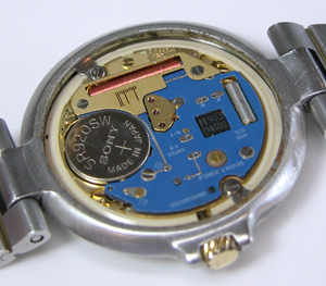 ムーブメントにも錆びた粉が付着していましたからチリふきで飛ばしてケースに戻します。ハイ、電池交換メンテナンス完了。電池交換のみで問題なく動きましたが翌日、止まっていました。OHまでして使う積もりは無いと言うことで禁じ手”注油”(;^_^A。これで3日様子をみても問題なく動いていたので発送ですね。