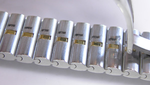 ステンレス無垢バンドに両開きバックル。