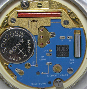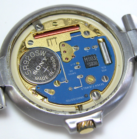 ブランドウォッチ汎用ムーブメント。プラスチックパッキンにまでサビが付いています。